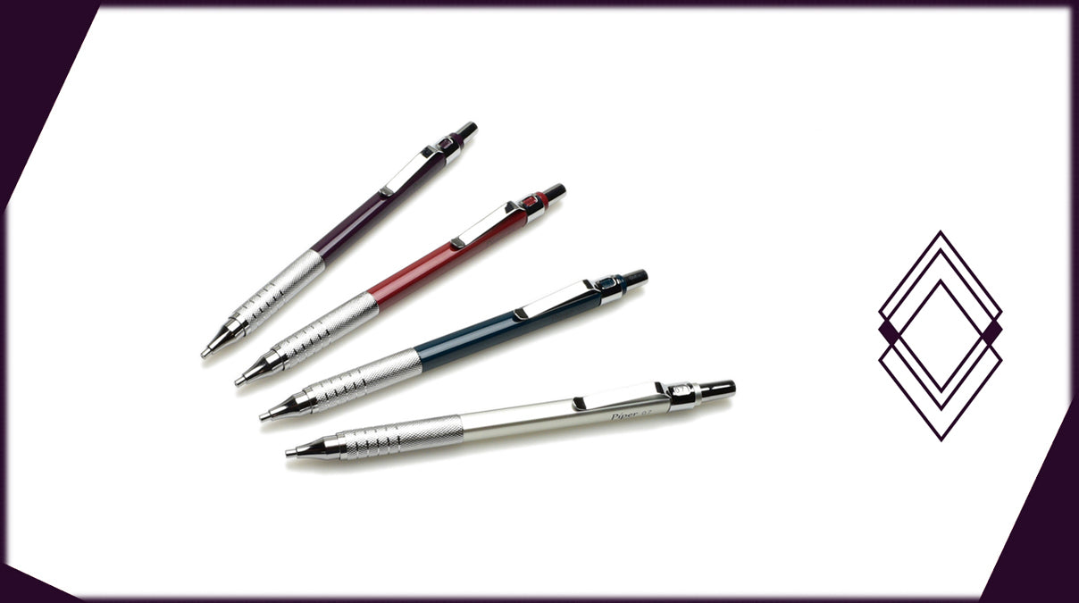 Want a mechanical pencil that is well balanced and made to last, without the inflated price? Look no further than the Piper Quadrata. Aluminum base with four sides to the barrel and a knurled rounded grip section. Available in 4 colors and .5, .7, and .9mm graphite lead options.